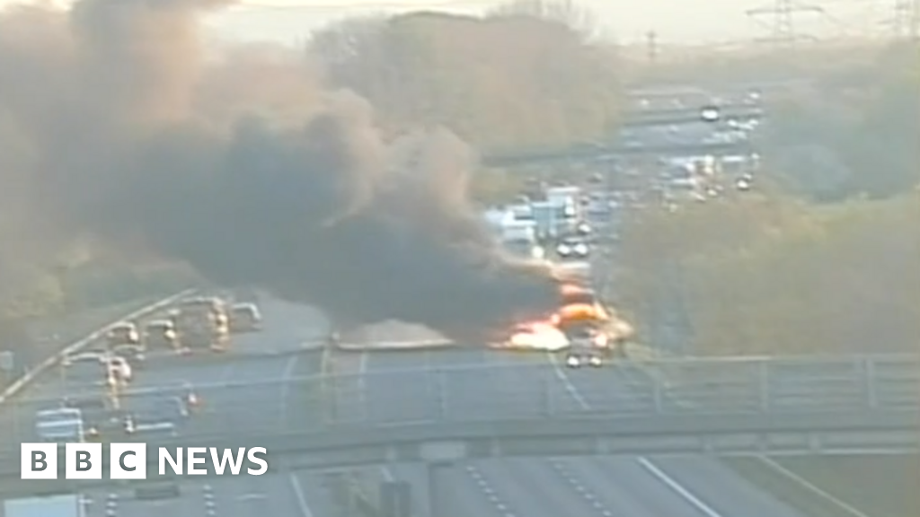 M56 lorry fire: Crews tackle ‘thick smoke’ as motorway closes