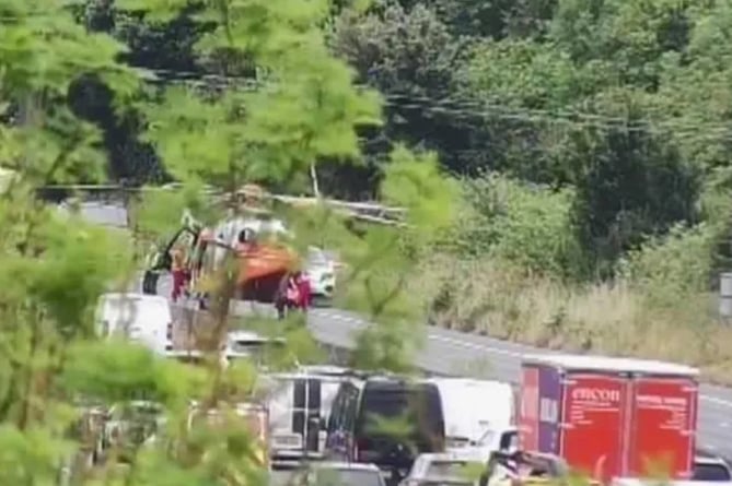 An air ambulance was called to the scene and landed on the carriageway while three Devon and Somerset Fire and Rescue crews worked to free the trapped driver with the help of a heavy rescue unit and hydraulic cutting equipment. Also in the news The driver was eventually airlifted to hospital for treatment to injuries which were described as serious, but not believed to be life-threatening.