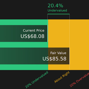 Implied valuation gap: about 6.3% above the recent US£65.57 share price