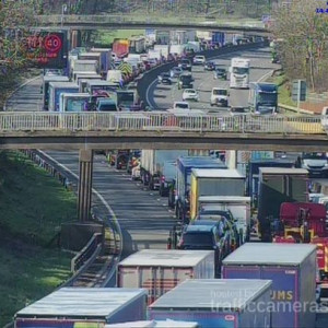 Motorway cameras show vehicles stuck in bumper to bumper traffic.